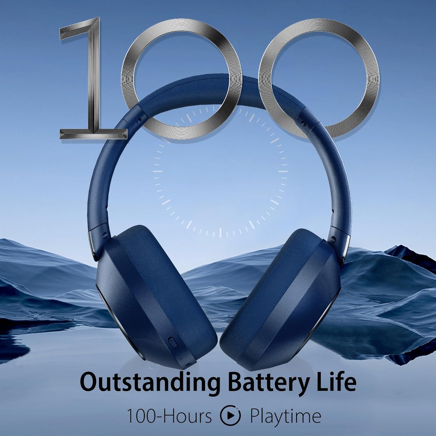 Active Noise Cancelling Headphones, 100H Playtime Headphones Wireless Bluetooth, Bluetooth Headphones with Microphone, Over- Ear Wireless Headphones with Deep Bass for Travel (6-Blue)