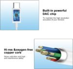 • Quality Material USB C Earphone: Metal-plated connectors greatly reduce the phenomenon of poor contact, Stretch resistant, long-lasting; 1.2 meters length, built-in powerful DAC chip to maintain the high resolution acoustics of your devices, no buzzing, popping, or any bad audio issues, just plug and play to enjoy your favorite music