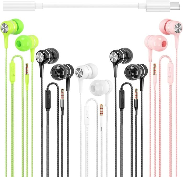 - [Tangle Free Design] – Multicolor 5 pack of wired earbuds, not only lightweight and portable but also wired earphones with microphone cable with tangle-free design, which makes you can the earbuds easily into your pocket and backpack.