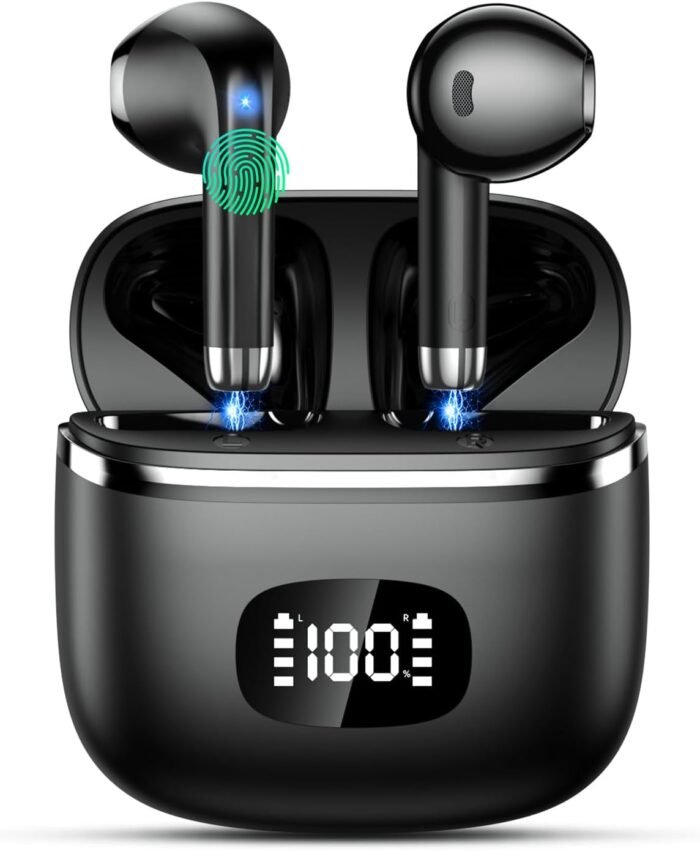 Home Bluetooth Headphones Wireless Earbuds Bluetooth Headphones 5.3 Bass Stereo Earphones, 40H Playtime Ear Buds with LED Power Display, Bluetooth Earbud with Noise Cancelling Mic IPX7 Waterproof Earbuds for iOS Android